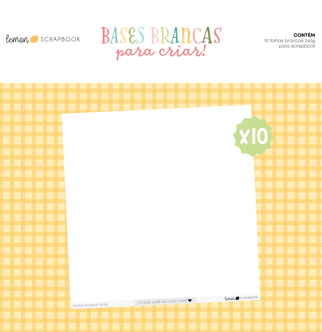 Bases Brancas para Criar | Kit 10 Folhas Brancas 240g (30,5x30,5cm) - Lemon Scrapbook
