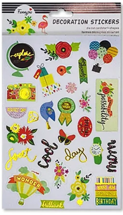 Cartela de Adesivos com elementos sortidos em papel.