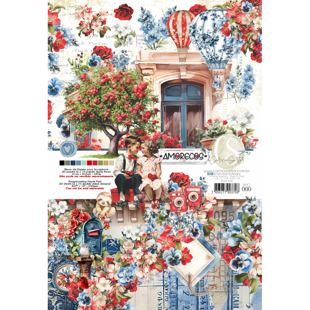 20 Papéis dupla face 21x30,5cm, com 42 designs