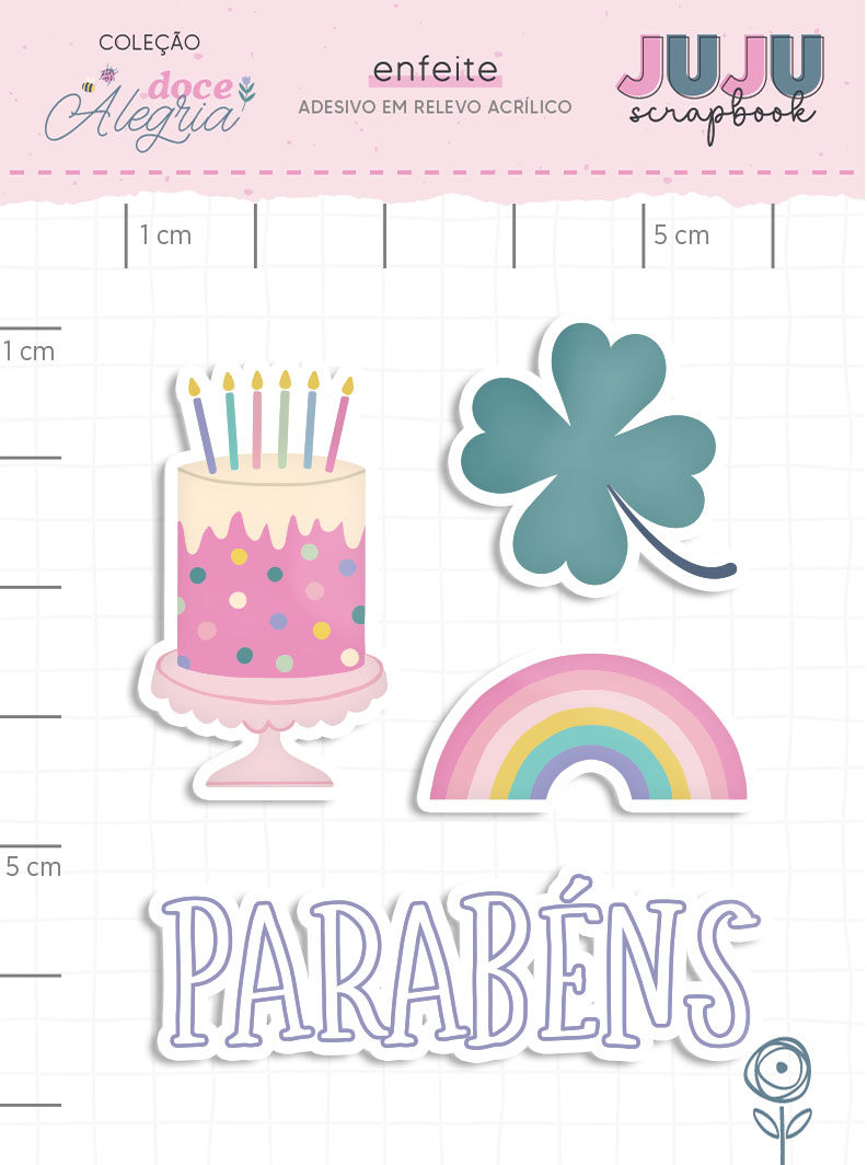 Coleção Doce Alegria - Adesivo em relevo Acrilico Parabéns - Juju Scrapbook