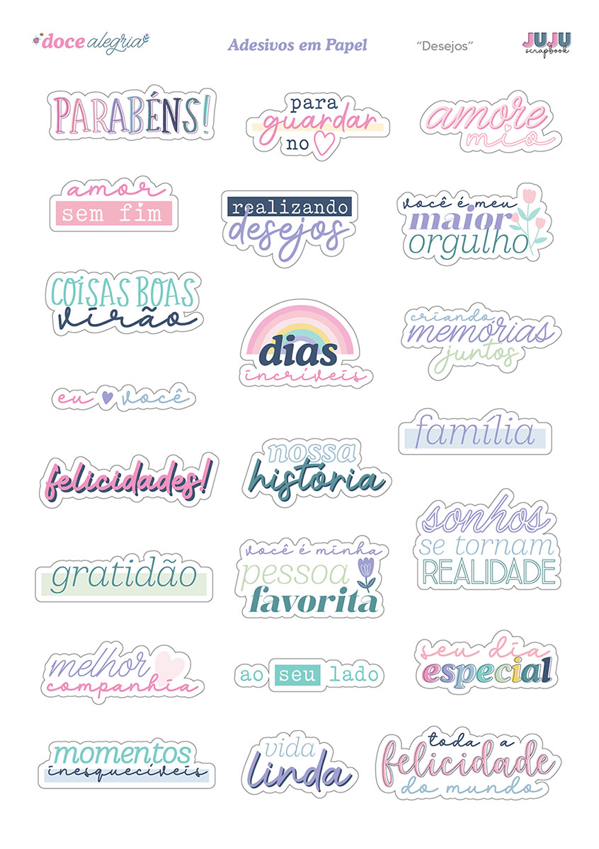 Cartela de Adesivos em Papel da Coleção Doce Alegria: