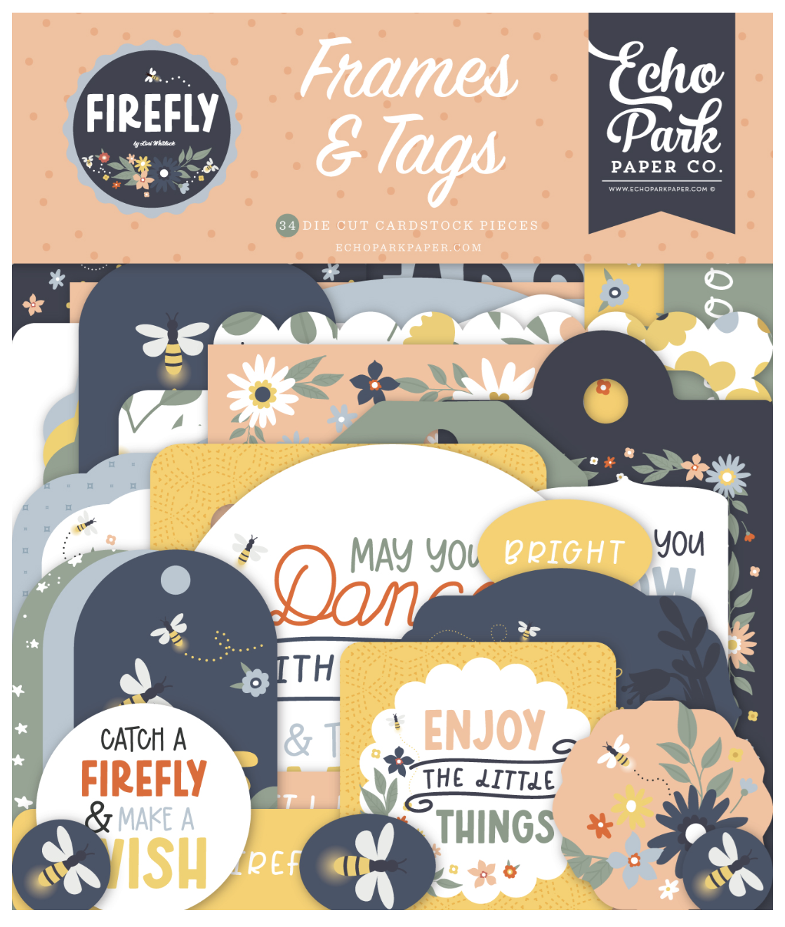 Este pacote de molduras e etiquetas inclui recortes individuais em Cardstock com elementos e desenhos que combinam com nossa coleção Firefly.