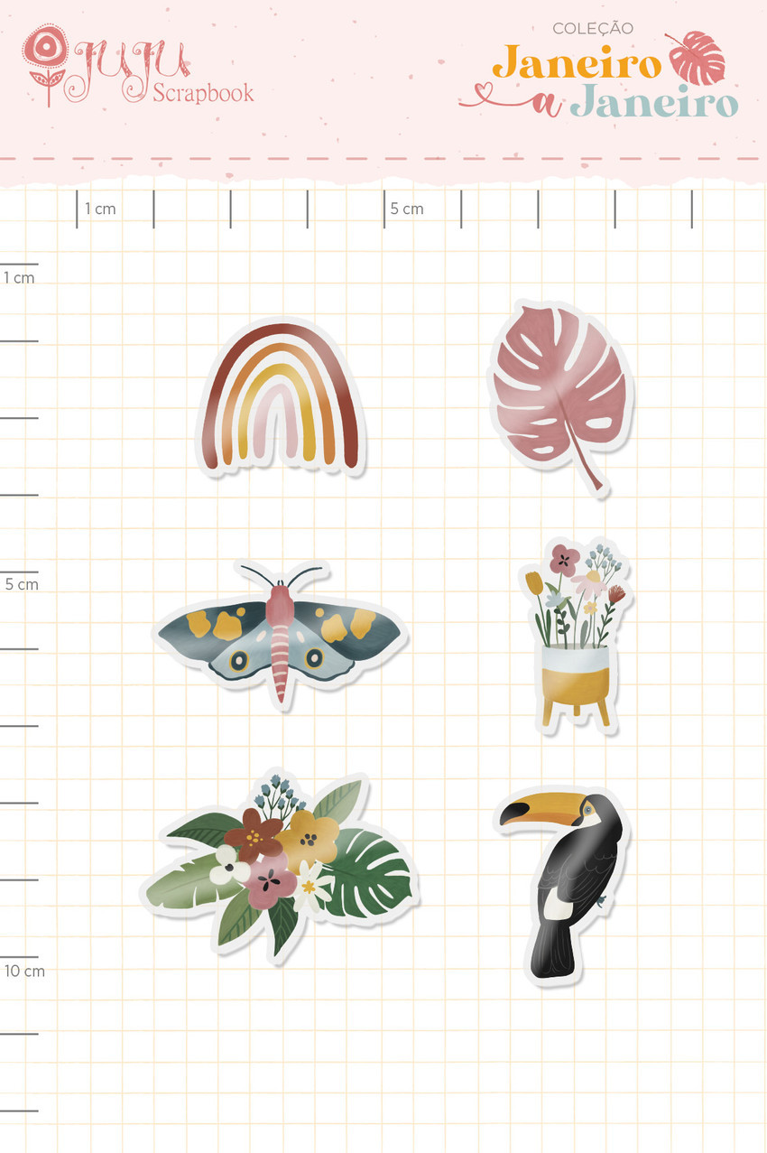 Colecao Janeiro a Janeiro - Kit de Acrilico Impresso Tamanduá - Juju Scrapbook