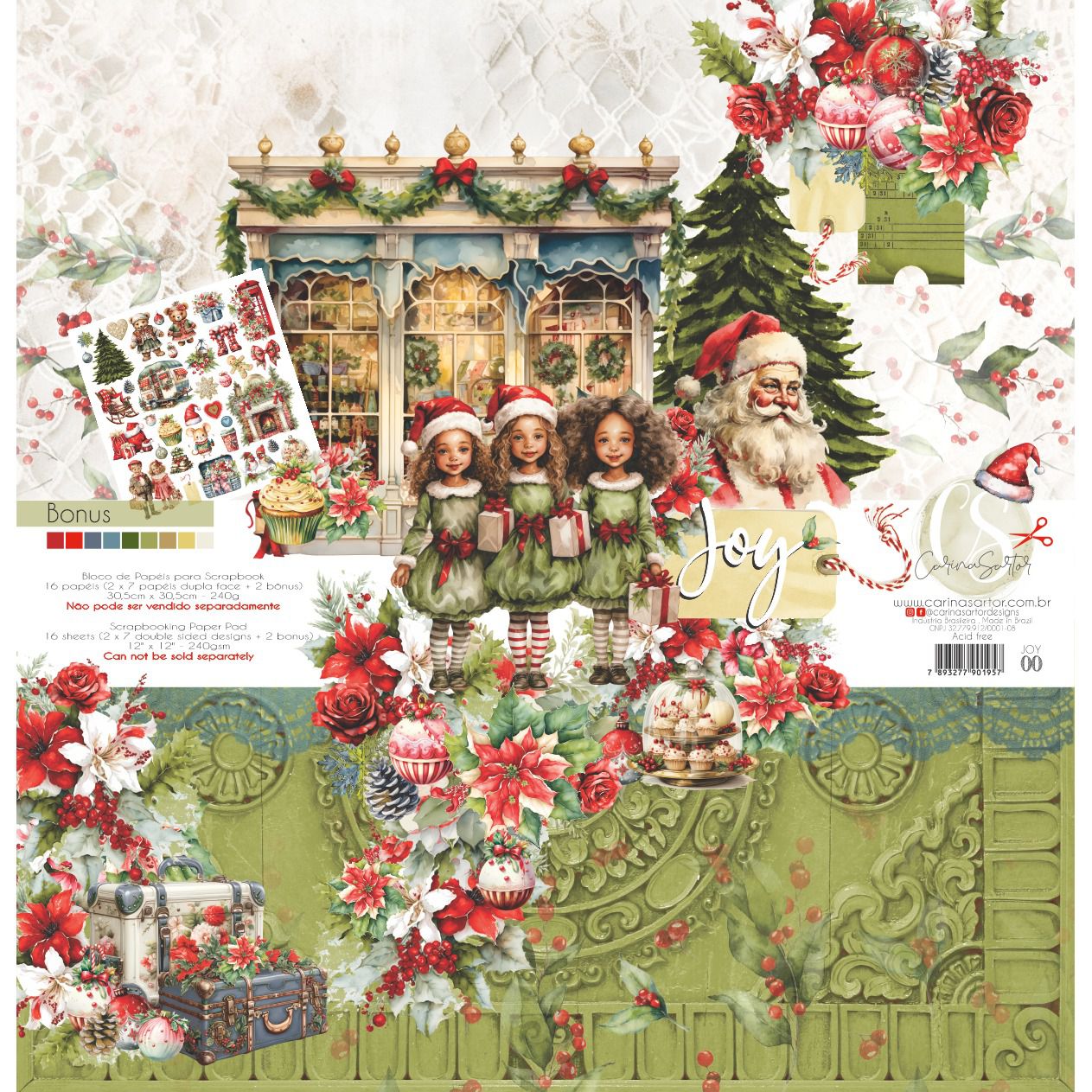 2 folhas de cada da coleção (7 modelos - 14 folhas) e 2 folhas capa bônus recorte exclusivo para o bloco.