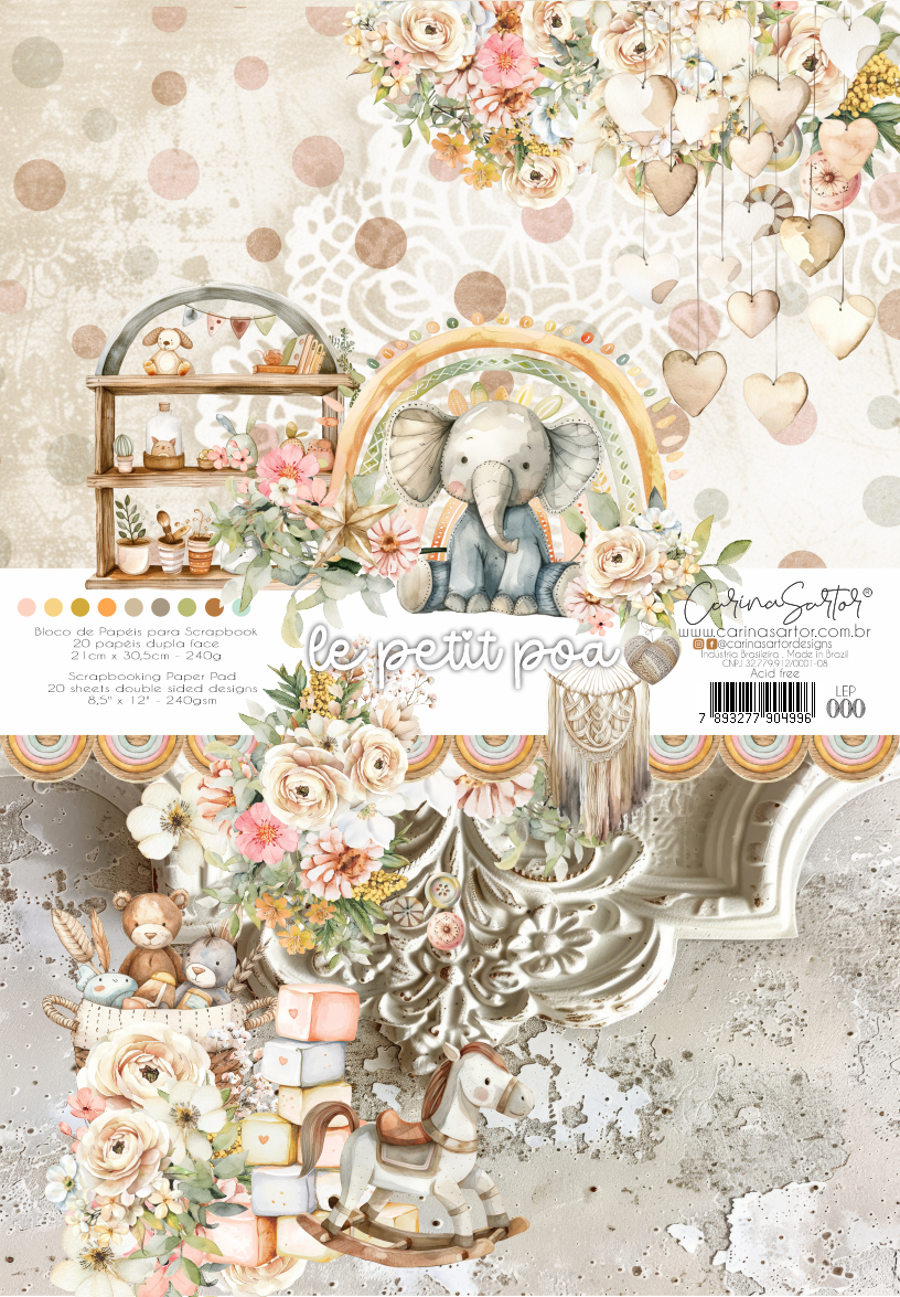 A coleção Le Petit Poa especialmente criada para seu álbum de bebê. Com elementos neutros e os bichinhos mais fofos do mundo do scrapbook, essa coleção oferece uma incrível versatilidade. Além disso, traz títulos em português e frases divertidas que toda mãe diz, adicionando um toque especial às suas criações.