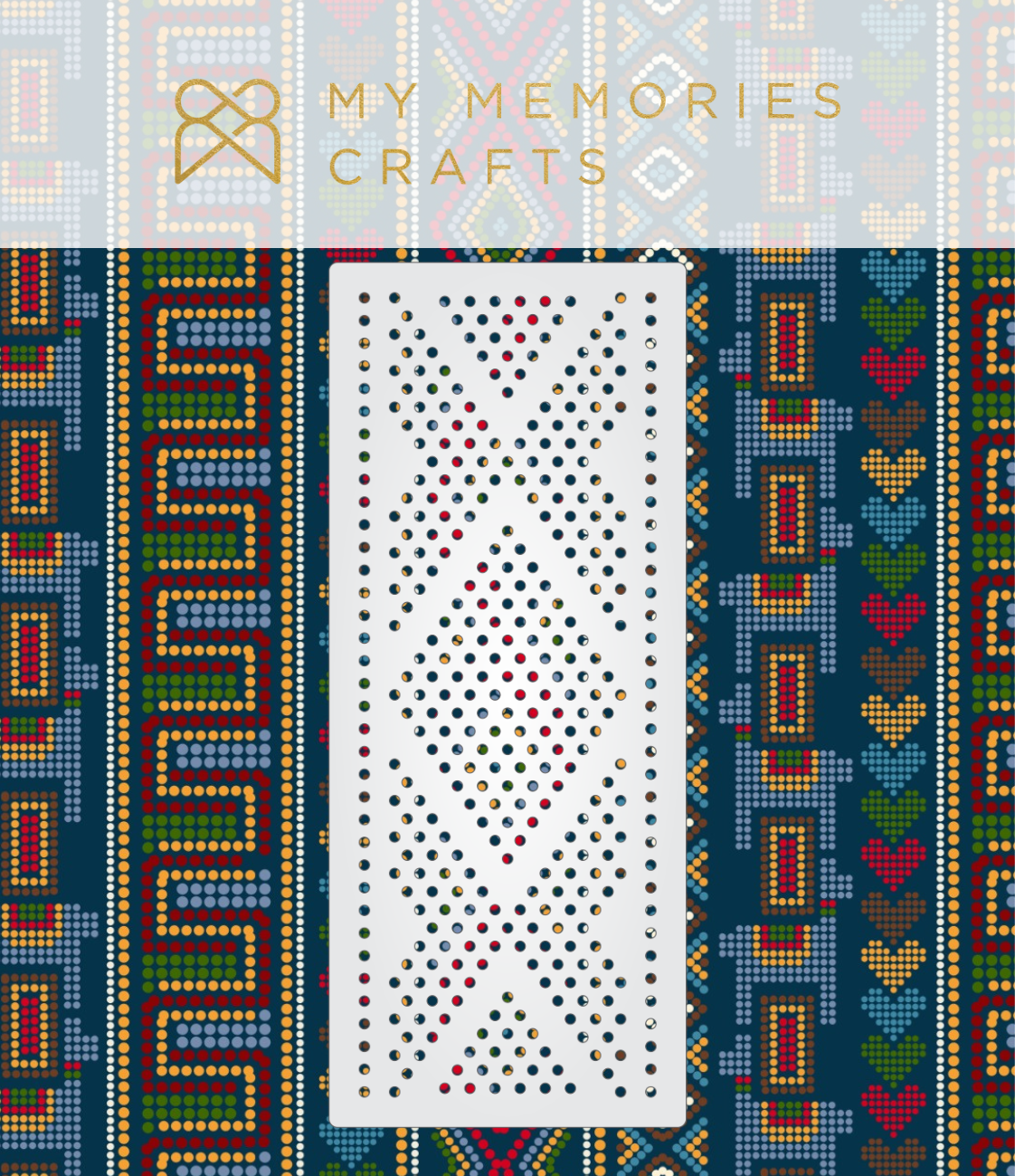 Régua de costura em acrílico, com medida de 10x4cm, com pontos que imitam as tramas geométricas presentes nas roupas incas.