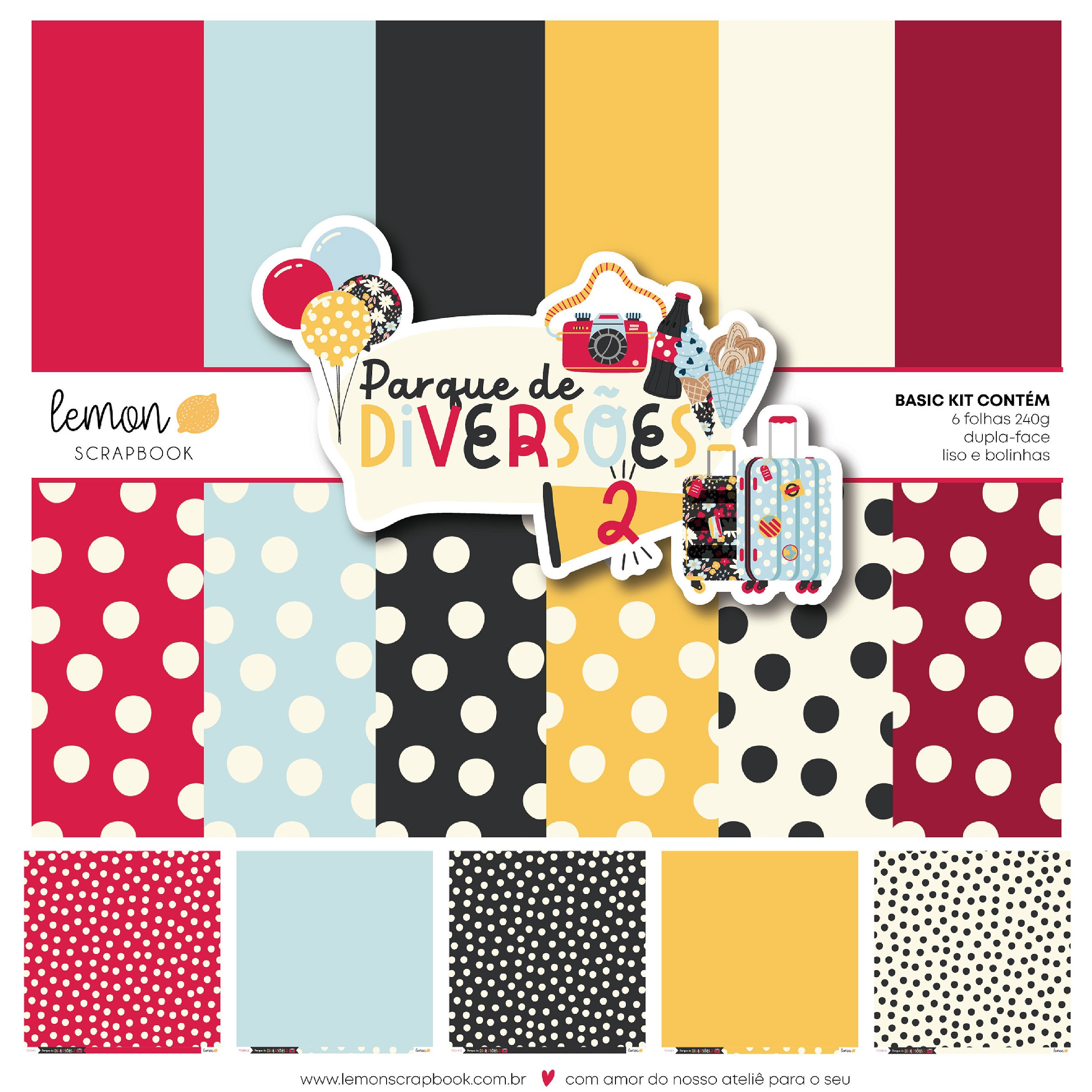 O Basic Kit contém 6 folhas lisas/xadrex da linha Parque de Diversões 2.