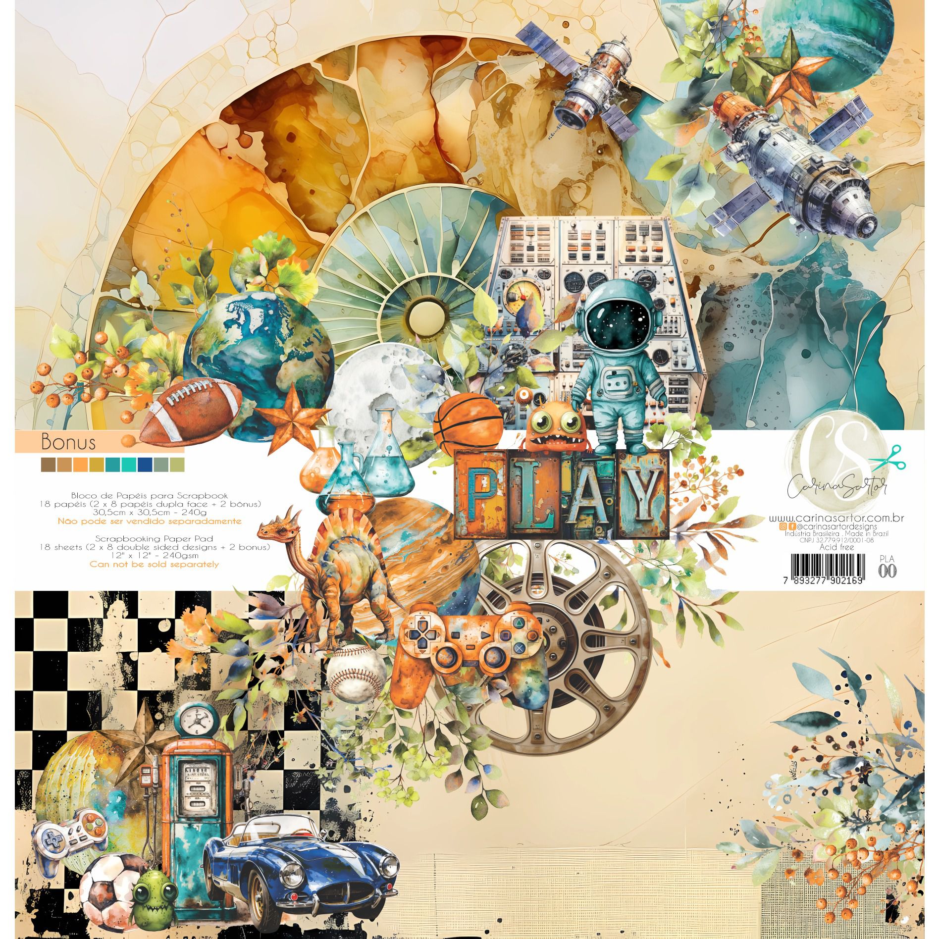 A Coleção PLAY foi desenvolvida pela Carina Sartor em uma paleta de cores vibrantes que são marcantes no universo masculino, mas com uma pegada mais alegre, mas com contraste lindo de padrões rústicos e oxidados. São diversos temas: esportes, planetas, astronautas, dinossauros, carros e video game! É a coleção que faltava para você registrar os momentos do seu filho com muitos elementos práticos escolhidos a dedo, como tags lindas e um alfabeto rusty incrível!