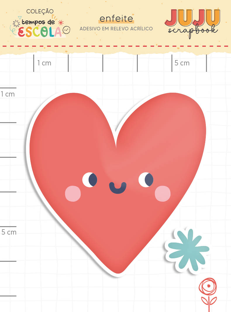 Coleção Tempos de Escola - Adesivo em relevo Acrilico - CORAÇÃO - Juju Scrapbook