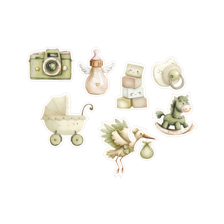 Aplique COISINHA DE BEBÊ em acrílico 2mm com adesivo DTF UV - 7 peças