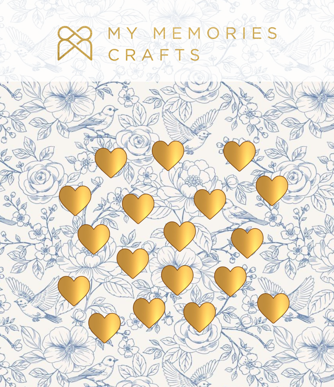 Kit com 18 corações em acrílico dourado com medida de 2x2 cm.