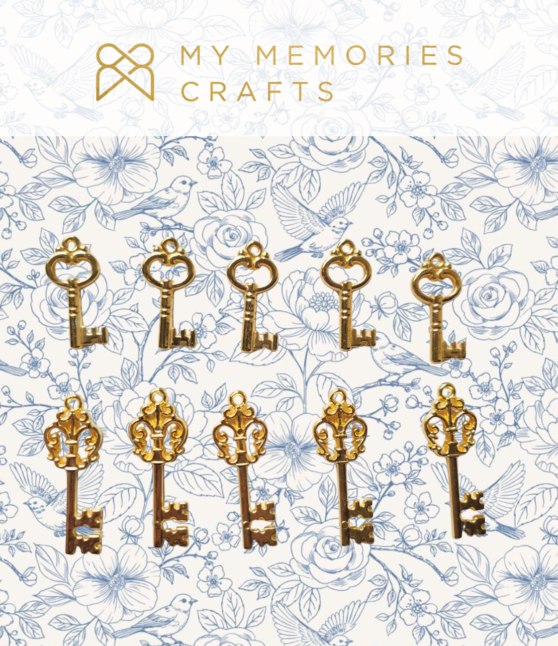 Kit com 10 pingentes de chaves douradas plásticas, sendo 5 delas no tamanho 2,6cm e 5 delas com tamanho 3,8cm.