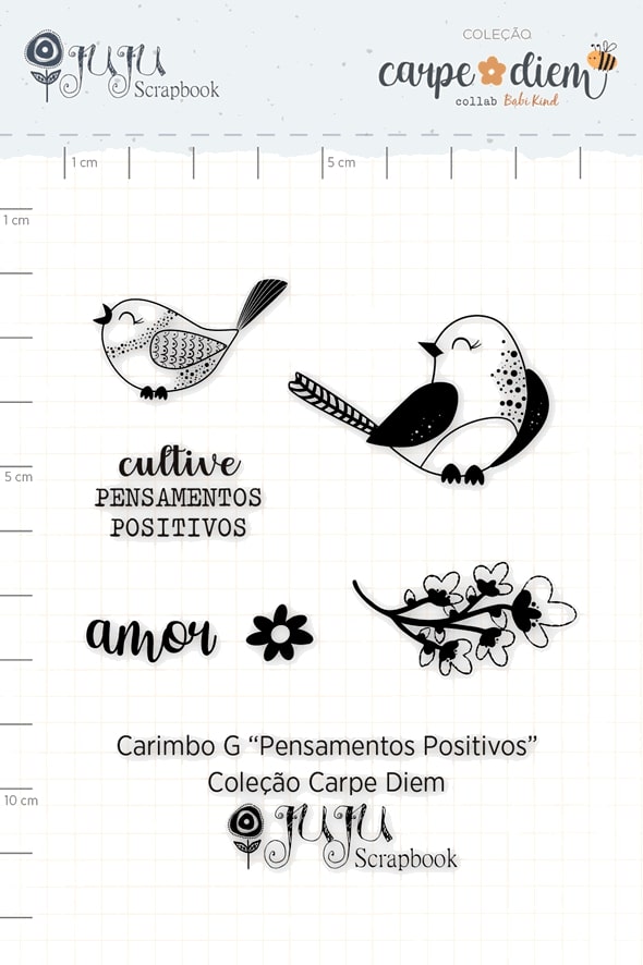 PROMO - Colecao Carpe Diem - Carimbo G Pensamentos Positivos - Juju Scrapbook
