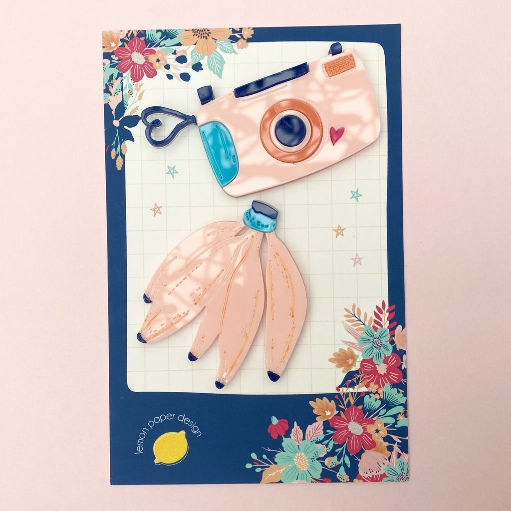 Coleção A Aventura está lá Fora - Acrílico Câmera e Banana - Lemon Scrapbook