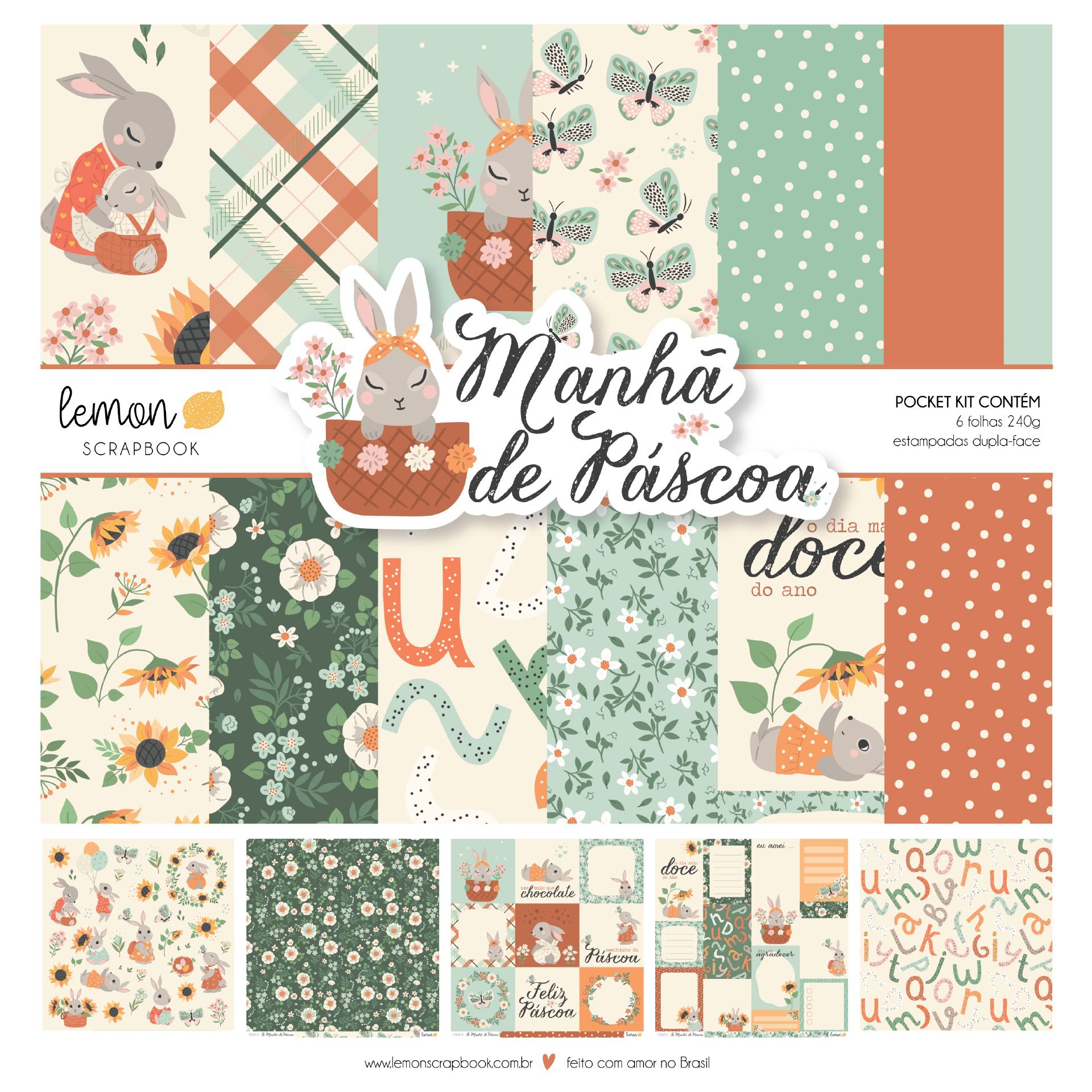 O Kit com 6 folhas contém uma folha de cada estampa da linha Manhã de Páscoa, uma coleção que celebra o dia mais doce do ano.